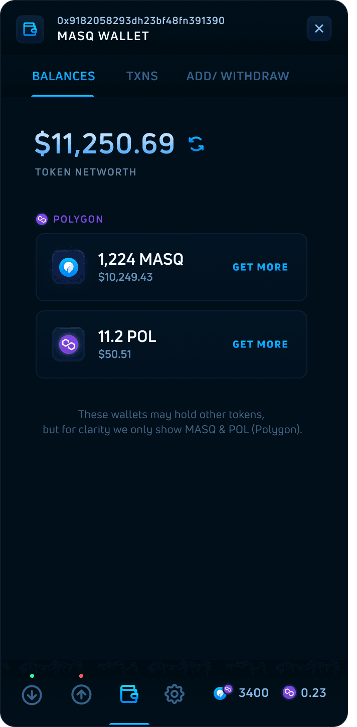 MASQ comes packed with Web3 Wallets across different blockchains out of the box – because we believe in the future of finance should be accessible by all and ready to use as soon as you start MASQ!