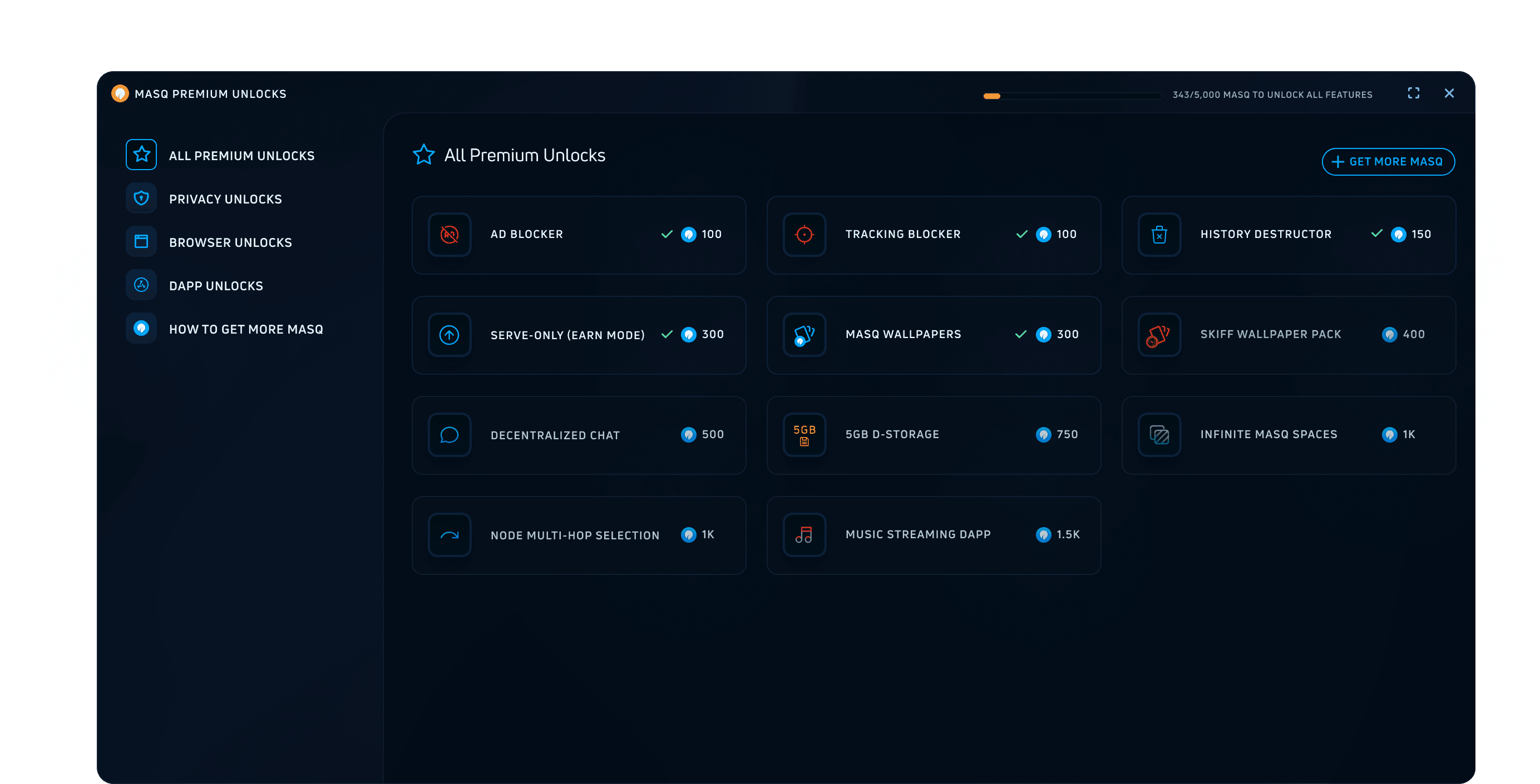 UNLOCK NEW FEATURES & REWARDS BY HOLDING MASQ